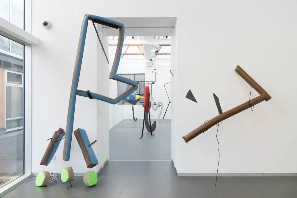 Rough Rough, an exhibition of new works by Soraya Rhofir.Rhofir borrows from Aotearoa/New Zealand’s everyday culture to produce work that she describes as “…an ensemble, a palette constructed as a collage, each piece opens to a dimension of ‘rough’: its vulnerability, its flexibility, its lightness…the pieces are nomadic, openings to another event, a horizon made of fabric, foam and wire”. Rhofir has historically worked with collage, clip art, big shifts in scale and immersive installations, but in this new body of work she expands her repertoire to include 3D inflatable objects, carved foam sculptures and printed textile banners. The various components are suspended from the walls and ceilings and meet us at ground level.